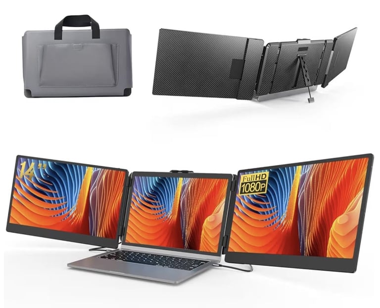 Laptop Screen Extender 14" 1080P FHD IPS β Triple Portable Monitor for 13β17" Laptops with Dual Speakers, Plug & Play via Type-C / HDMI / USB-A (Windows / Mac / Chrome)