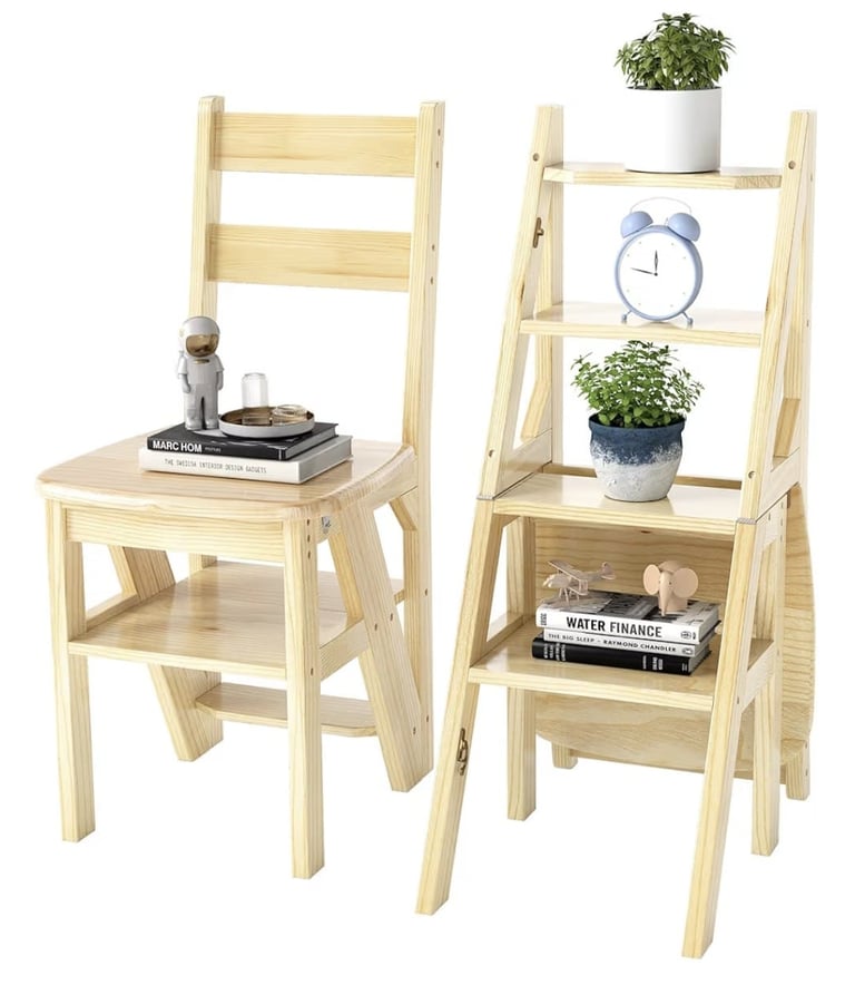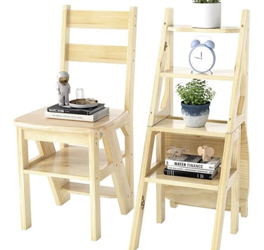 The 3-in-1 Folding Wooden Step Ladder Chair combines practicality with stylish home décor.