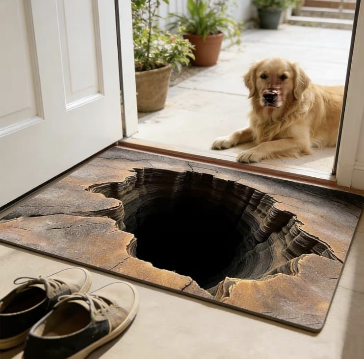 With a size of 50 × 80 cm, this rug is perfect for door entrances, bathrooms, hallways, or stair zones. It’s also great for testing and playing with cats or dogs, as many pets react to the illusion as if it were a real hole, creating funny and entertaining moments.