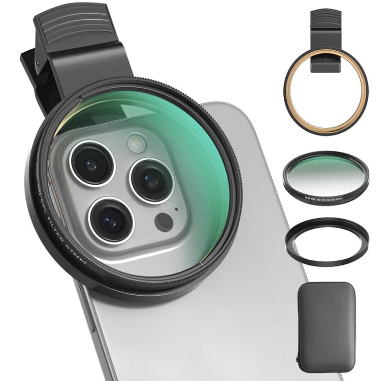 67mm CPL Filter for Phone/DSLR – HD Circular Polarizer with Universal Clip & Adapter Ring, Compatible with iPhone, Samsung Galaxy, Pixel & Cameras