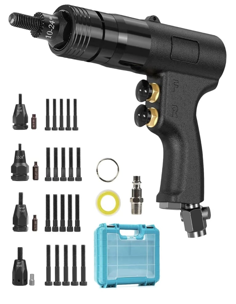 4-IN-1 Pneumatic/Air Rivet Nut Gun Set – Automatic Nutsert Installation Tool with Quick-Change Nozzles