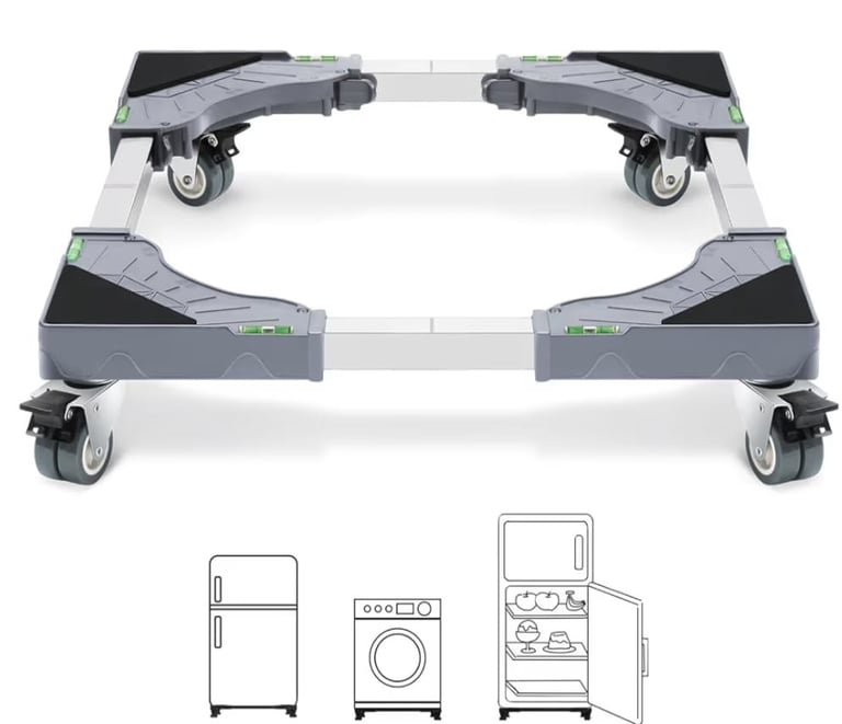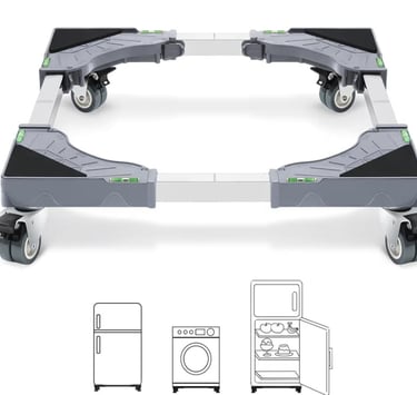 This adjustable roller base features four strong twin wheels that provide smooth mobility, along with locking mechanisms to keep appliances securely in place when stationary. Its adjustable frame allows it to accommodate different appliance sizes, offering both flexibility and stability.