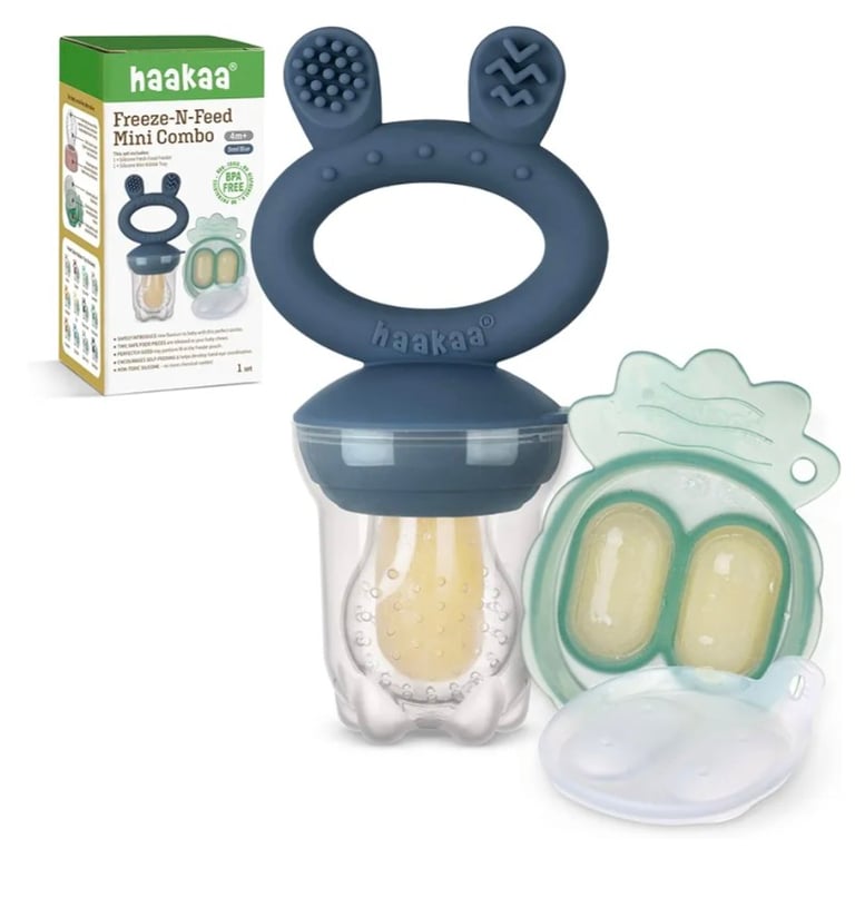 Haakaa Baby Fruit Food Feeder & Mini Freezer Nibble Tray Combo – Breastmilk Popsicle Molds for Baby Cooling Relief, BPA Free Silicone Feeder for Safe Infant Self Feeding, 4 Months+