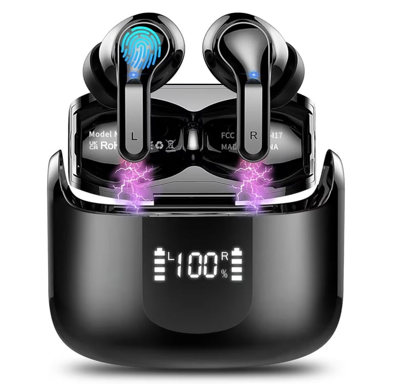 Wireless Earbuds Bluetooth 5.3 – 40H Battery, Stereo Bass Sound, ENC Noise Cancelling with 4 Mics, IP7 Waterproof, LED Display & USB-C for Android & iOS