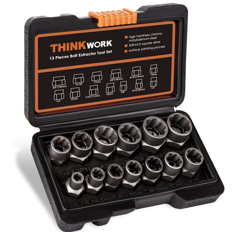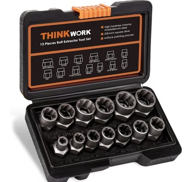 The THINKWORK Bolt Extractor Kit makes removing damaged or rounded bolts and nuts easy, without harming other tools.