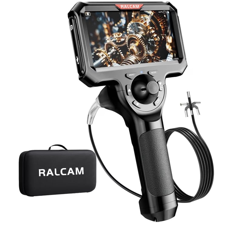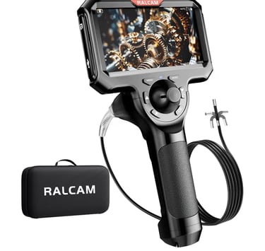 4-Way 360° Articulating Borescope – 5” HD Endoscope Camera with Light for Engine, Pipe & Wall Inspection