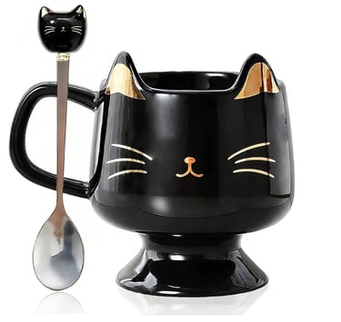The High-Footed Ceramic Cat Mug offers a cute and charming design for both cat lovers and coffee enthusiasts. Featuring a playful kitty expression, this mug adds a fun touch to your daily coffee or tea moments.