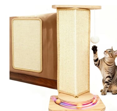 The Couch Cat Corner Scratcher with Interactive Ball is a practical solution for cat owners to help protect furniture from scratching, as it attaches to couch corners or walls to provide a dedicated scratching area.