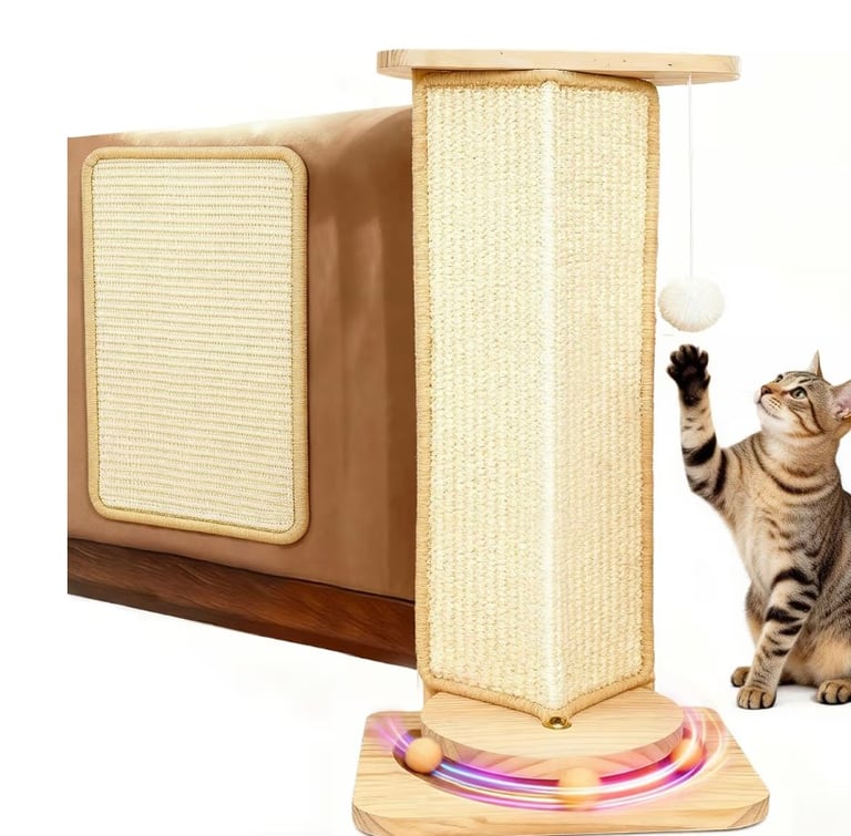 Couch Cat Corner Scratcher – Sisal Scratch Pad with Interactive Ball, Wall & Furniture Protector (25")