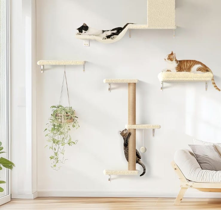 With its neutral beige color, this cat wall furniture blends seamlessly into modern home décor. It’s ideal for small to medium-sized cats and offers an engaging vertical playground without taking up valuable floor space.