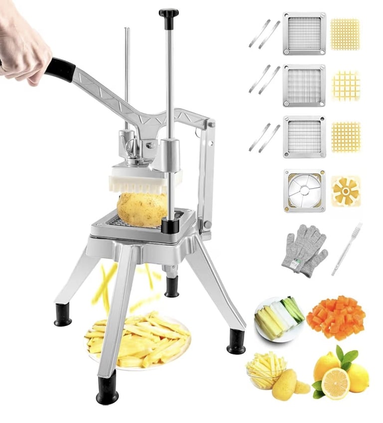 VEVOR Commercial Vegetable Chopper with 4 Replacement Blades – Stainless Steel French Fry Cutter, Potato Dicer & Fruit Slicer for Restaurants & Home Kitchen