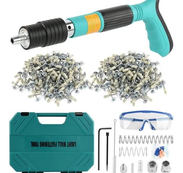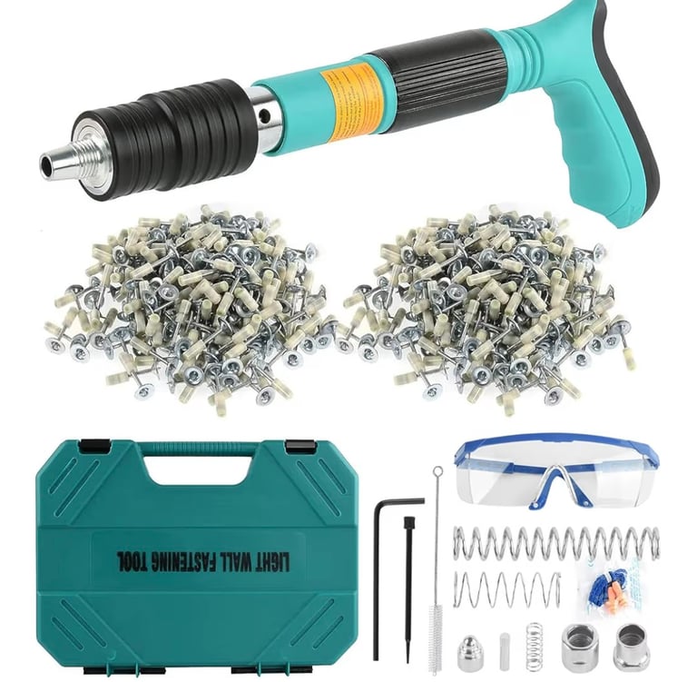 The EXCECAR Concrete Nail Gun Kit is a practical tool designed for fastening nails into hard surfaces such as concrete and walls, without the need for complex power tools.
