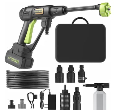 The 990 PSI Cordless Pressure Washer offers a convenient, wire-free solution for everyday cleaning tasks. Powered by a 21V rechargeable battery, it delivers portable performance for washing cars, bikes, patios, outdoor furniture, and walkways without needing a fixed water source.
