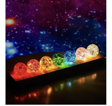 7-Color 40mm Ice Cracked Crystal Chakra Balls with LED Wooden Base – Elegant Lighting Décor & Perfect Gift