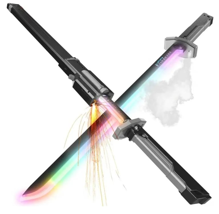 This 31.5-inch sword features 8 RGB LED colors that can be adjusted, creating a dazzling visual display during play or display. The sword also includes a mist spray and spark effects with every strike, adding realism and extra fun.