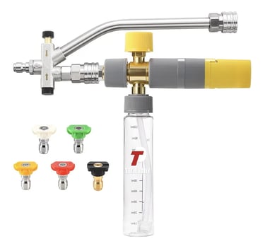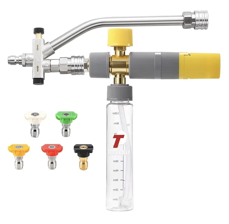 The Tool Daily Foam Cannon is an ideal tool for washing cars, bikes, motorcycles, and even driveways or outdoor surfaces. Designed for use with pressure washers, it provides an efficient and fast cleaning experience with an even foam coverage.