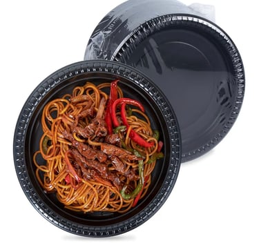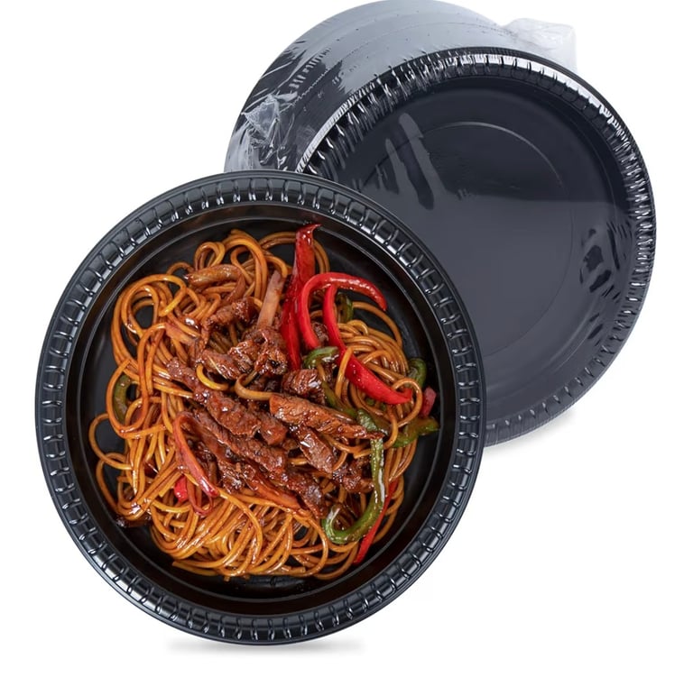 The black color provides a clean and elegant presentation for different types of food.