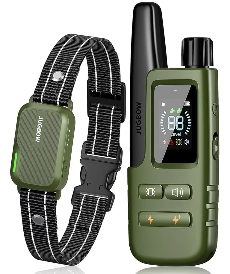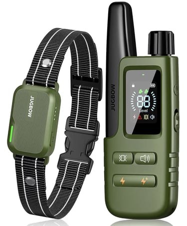 The Jugbow Dog Shock Collar is an effective and safe tool for training dogs, helping them learn commands and correct behaviors quickly. With a remote range of up to 4200FT, it offers freedom for outdoor or indoor training sessions.