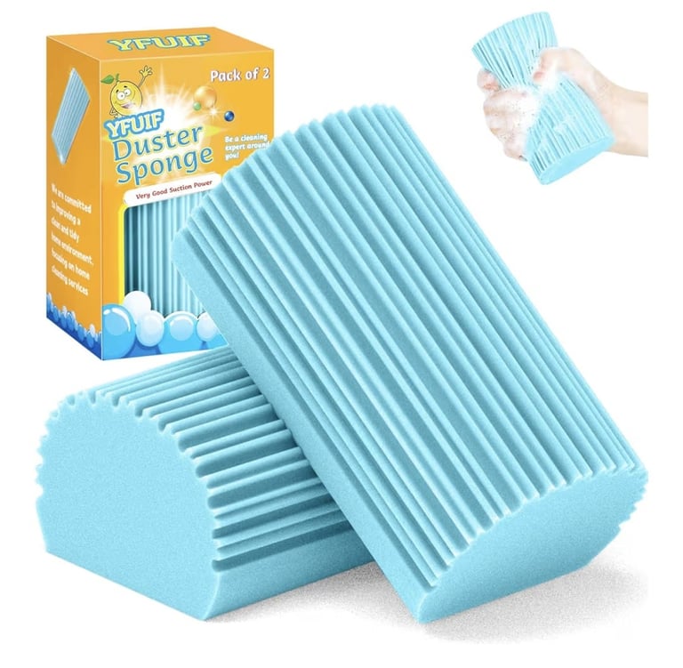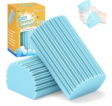 The Duster Sponge Cleaning Tool is designed to provide an easy and efficient way to keep your home clean, especially in hard-to-reach areas. With its ribbed and flexible texture, this sponge helps remove dust, dirt and light stains from various surfaces without causing scratches. It works well for cleaning baseboards, blinds, vents, mirrors, window tracks, faucets and railings, making it a versatile option for everyday cleaning.