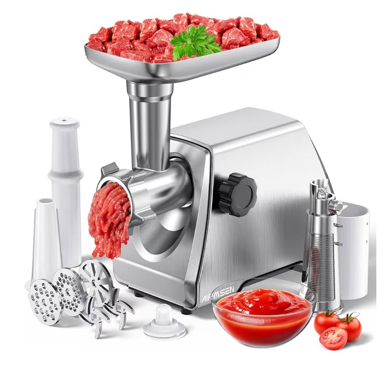 AIRMSEN Electric Meat Grinder & Tomato Sauce Press – Heavy Duty Food Mill for Meat Grinding, Sausage & Tomato Sauce