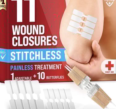 Emergency Wound Closure Strips – 11-Pack, 2 Types, Easy-to-Use Stitchless Butterfly Bandages
