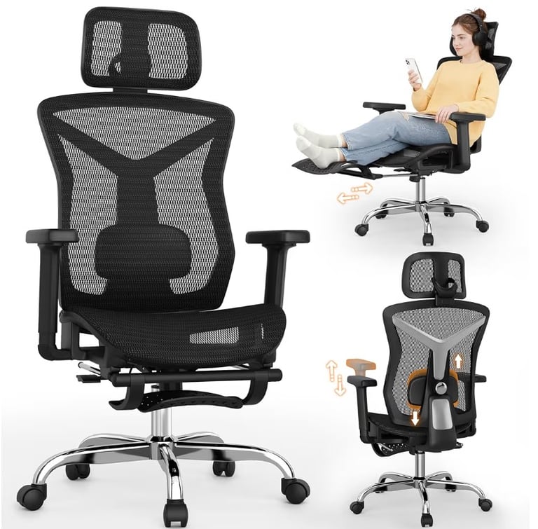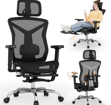 Ergonomic Office Chair with Footrest – 3D Lumbar Support, Adjustable Headrest & Armrests, 90°–135° Recline Mesh Gaming Chair