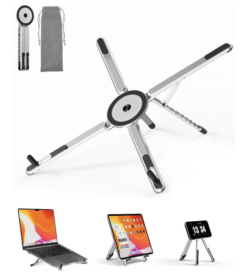 Viozon Portable Laptop Stand for Desk – Foldable Adjustable Computer Riser with Magnetic Phone Holder, Fits 10–16" Laptops & 4–13" Phones/Tablets