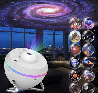 The 12-in-1 Galaxy Star Projector offers a magical experience for the whole family, transforming any room into a starry galaxy wonderland. This projector features HD high-definition display with moving meteor effects, adding an engaging and aesthetic dimension to your lighting.