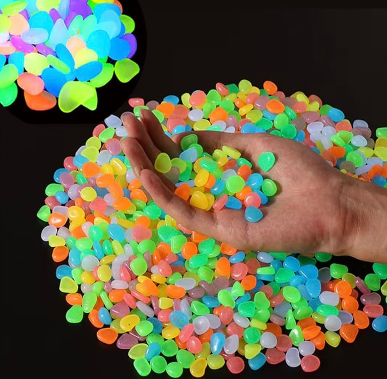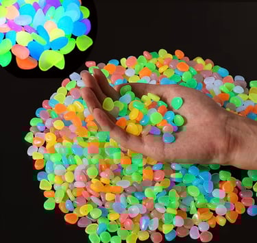 The Glow in the Dark Pebbles 1000pcs is a great way to add a unique glowing decorative touch to both indoor and outdoor spaces.
