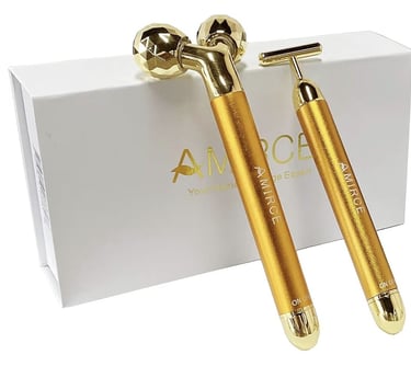 Amirce Golden 3D Electric Face Massager Roller & T-Shape Facial Roller Kit