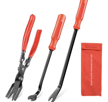 Includes clip pliers and trim removal tools designed to safely remove plastic fasteners and clips.
