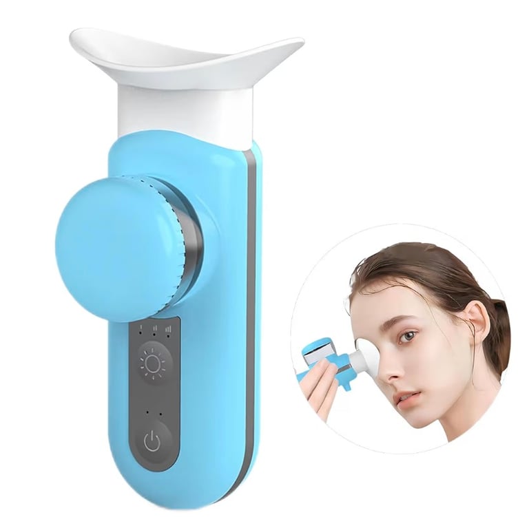 The Heated Nano Eye Mist Sprayer is a device designed for eye care, providing a warm mist and gentle spray to help moisturize and soothe dry eyes.