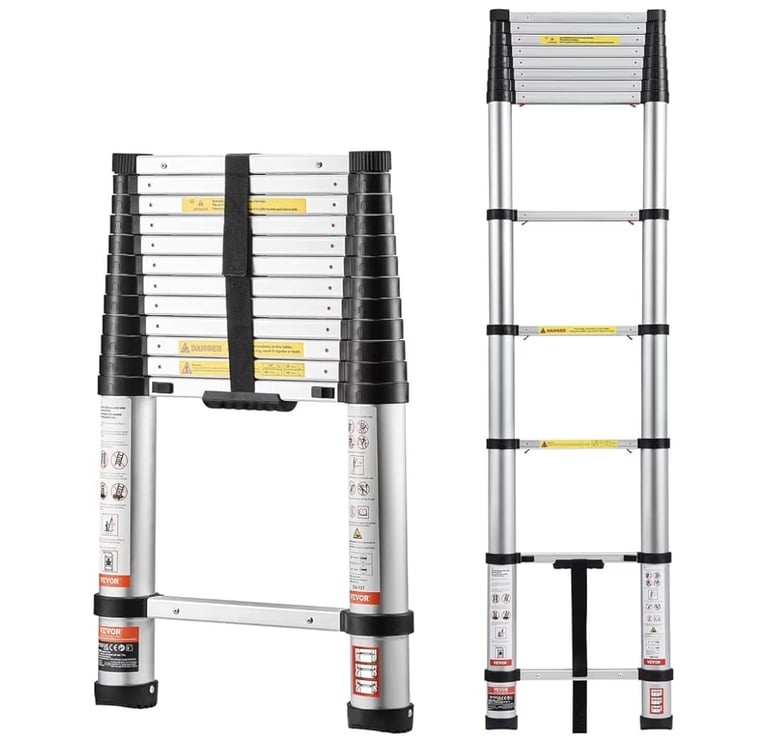 The VEVOR 12.5ft Telescoping Ladder is the ultimate solution for home, outdoor, and loft work. Crafted from lightweight yet strong aluminum, it is easy to transport and store without compromising durability or safety.
