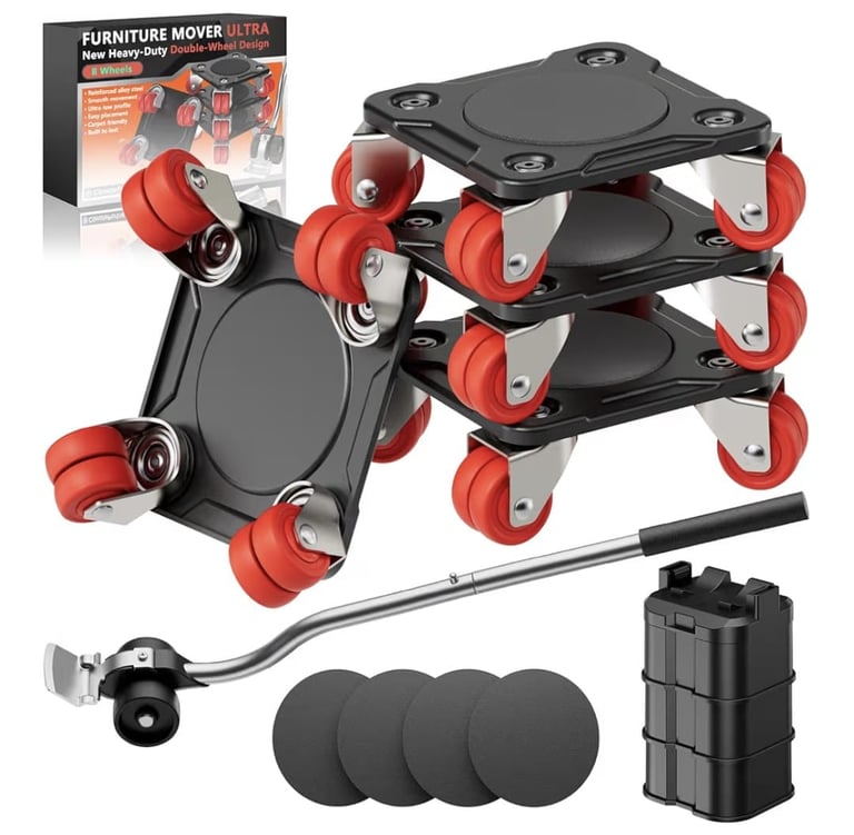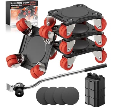 The ONEON Furniture Mover Ultra is an innovative and efficient tool for moving heavy furniture and items at home or in the office with minimal effort. This mover features 8 double low-profile wheels for excellent stability and control during transport.