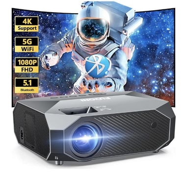 The FUDONI Projector with WiFi and Bluetooth delivers an amazing cinematic experience at home or outdoors. This projector supports 4K and HD 1080P, providing bright, clear images even on a large screen up to 300 inches.