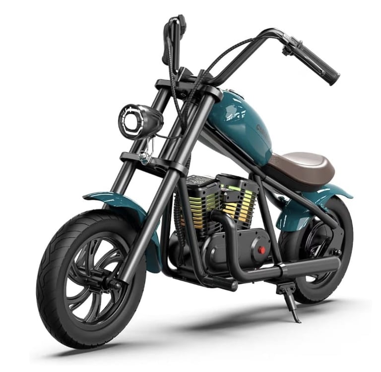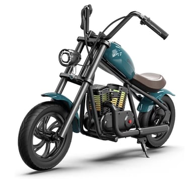 The Hyper GoGo Kids Electric Motorcycle offers a fun and safe riding experience for children ages 3 and up. Featuring a retro-style design with ambient lighting, this electric bike makes playtime more exciting and visually engaging.
