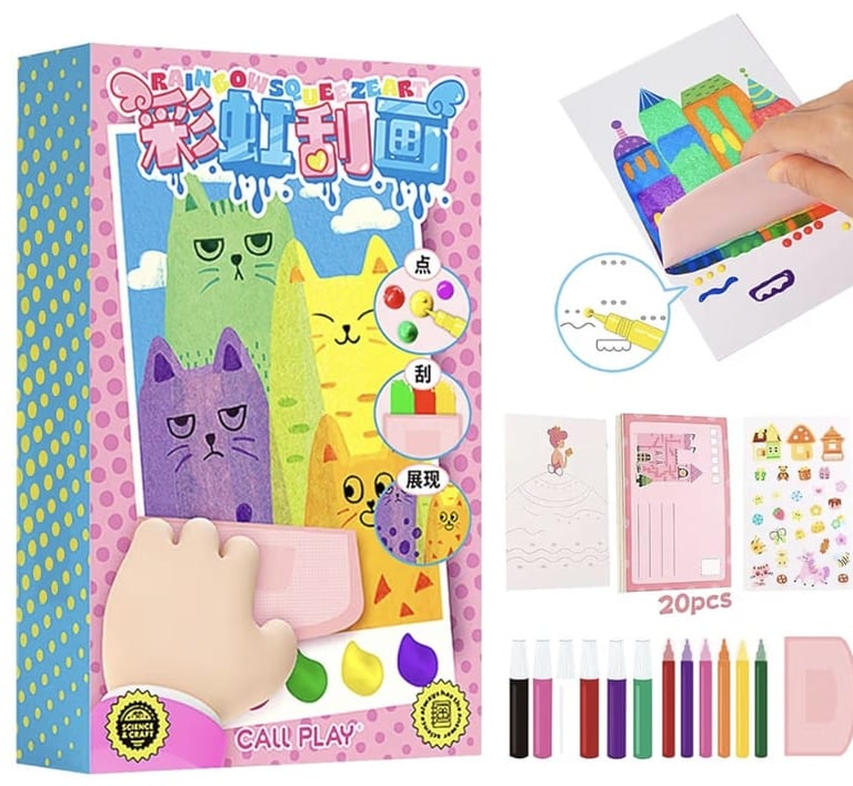 The kit includes scratch paper notebooks and easy-to-use tools that help children create their own designs. Scratch art activities support creativity, fine motor skill development, and imaginative expression in a playful way.