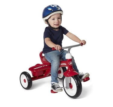 The Radio Flyer Red Rider Trike brings classic outdoor fun to young riders aged 2.5 to 5 years. Built with a durable steel frame and a comfortable adjustable seat, it grows with your child for years of riding enjoyment. Its sturdy three-wheel design provides stability and balance, helping toddlers develop coordination and confidence while they play.