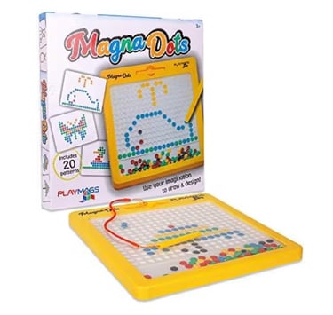 It comes with a magnetic pen that allows kids to pull small beads to the surface, creating different shapes and drawings easily.