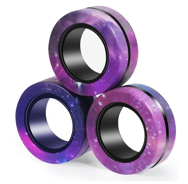 Relieve stress and anxiety in a fun way with the Magnetic Fidget Rings — a 3-piece set designed to promote focus and relaxation for kids, teens, and adults alike.