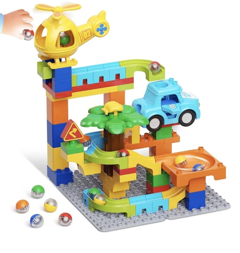 This set is compatible with all major brands of building blocks, allowing children to integrate it with existing collections. It encourages hands-on learning as kids experiment with slopes, curves, and tracks to guide the marbles smoothly.