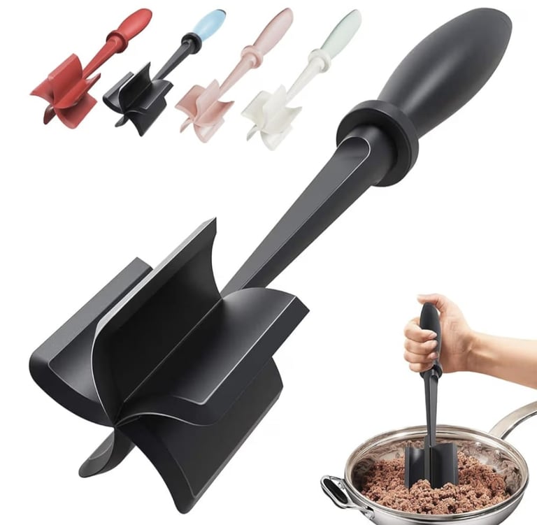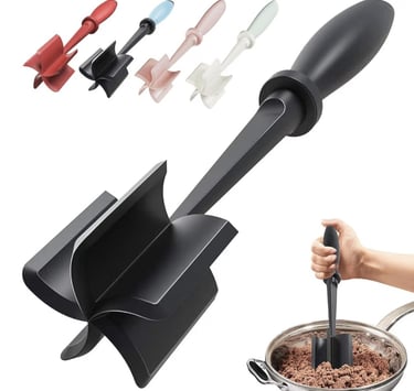 The Upgrade Meat Chopper is an essential kitchen tool for preparing burgers, ground beef, and mashed potatoes quickly and efficiently. Made of heat-resistant nylon with a non-stick surface, it ensures easy cleaning and maintains kitchen hygiene.