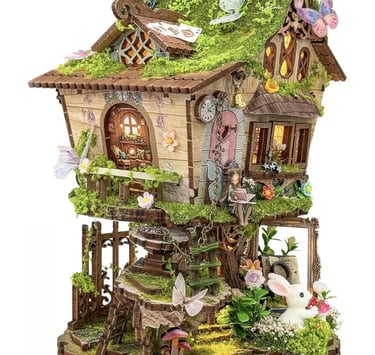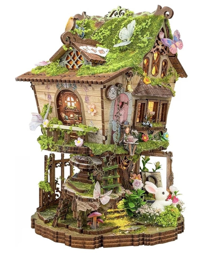 The kit is specially designed for DIY enthusiasts, featuring carefully crafted pieces that assemble step by step, providing a fun and relaxing experience. You’ll appreciate the fine details, including tiny windows, wooden pathways, a decorated tree, and lighting that adds a magical realism to the final miniature scene.