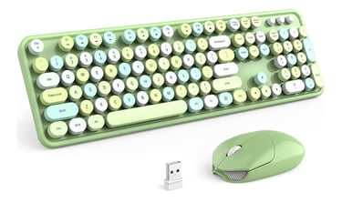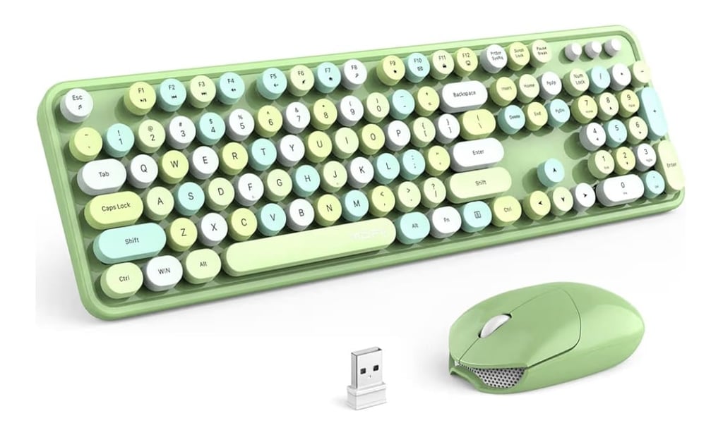 MOFII Wireless Keyboard and Mouse Combo – Retro Typewriter Style Full-Size Keyboard with Number Pad & Mouse for PC, Laptop, Mac & Windows (Green Colorful)