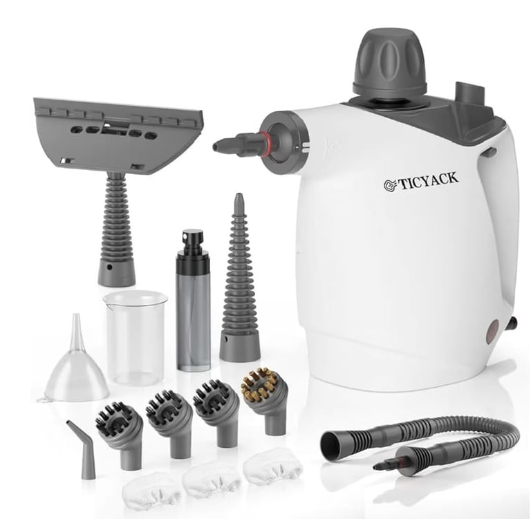 Handheld Steam Cleaner with 16 PCS Accessories & Safety Lock โ 500ML Capacity, Multi-Surface Deep Cleaning for Home, Car, Bathroom, Grout, Floor & Windows