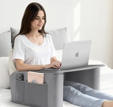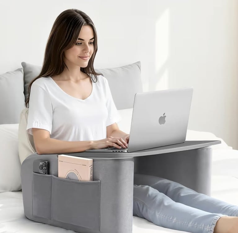 The Reading Pillow with Arm Rests and Wooden Lap Desk provides ergonomic support for relaxing, studying, or gaming in bed or on the couch.