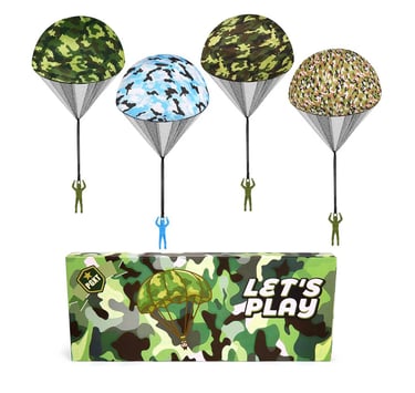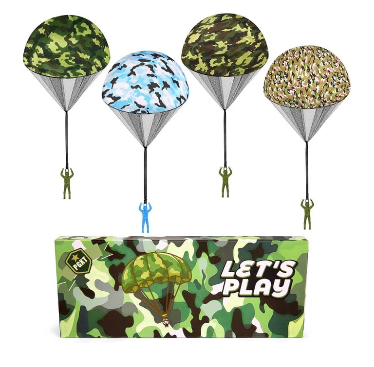 The Kids Parachute Toy Army Men is a simple and fun toy where kids can launch a small parachute soldier into the air and watch it gently float down.