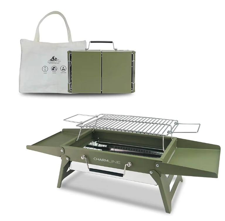 Charmline Portable Charcoal BBQ Grill – Foldable Compact Barbecue for Camping, Picnic & Tabletop Use (1–3 People)