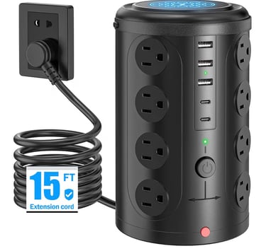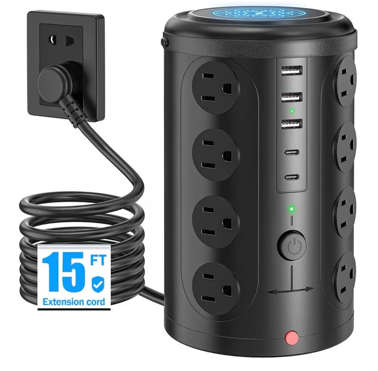 The Power Strip Tower Surge Protector 16 Outlets is a practical solution for organizing and powering multiple devices in one place, ideal for home, office, or dorm setups.