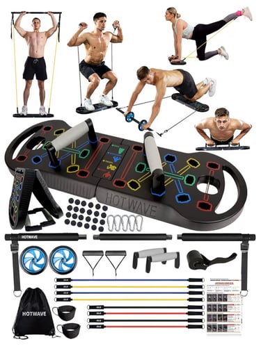 The HOTWAVE Push Up Board Fitness 20 in 1 is a versatile home workout tool designed to improve upper body strength through structured push-up exercises. The board allows users to perform multiple push-up variations targeting muscles such as the chest, shoulders, triceps, and back.